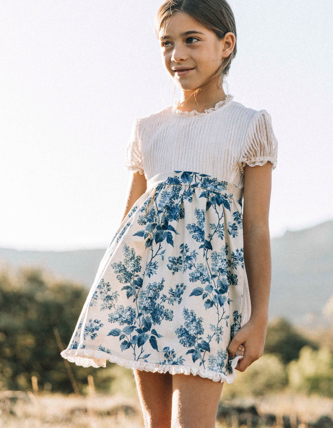 Cuello y mangas rematados con valencienne.